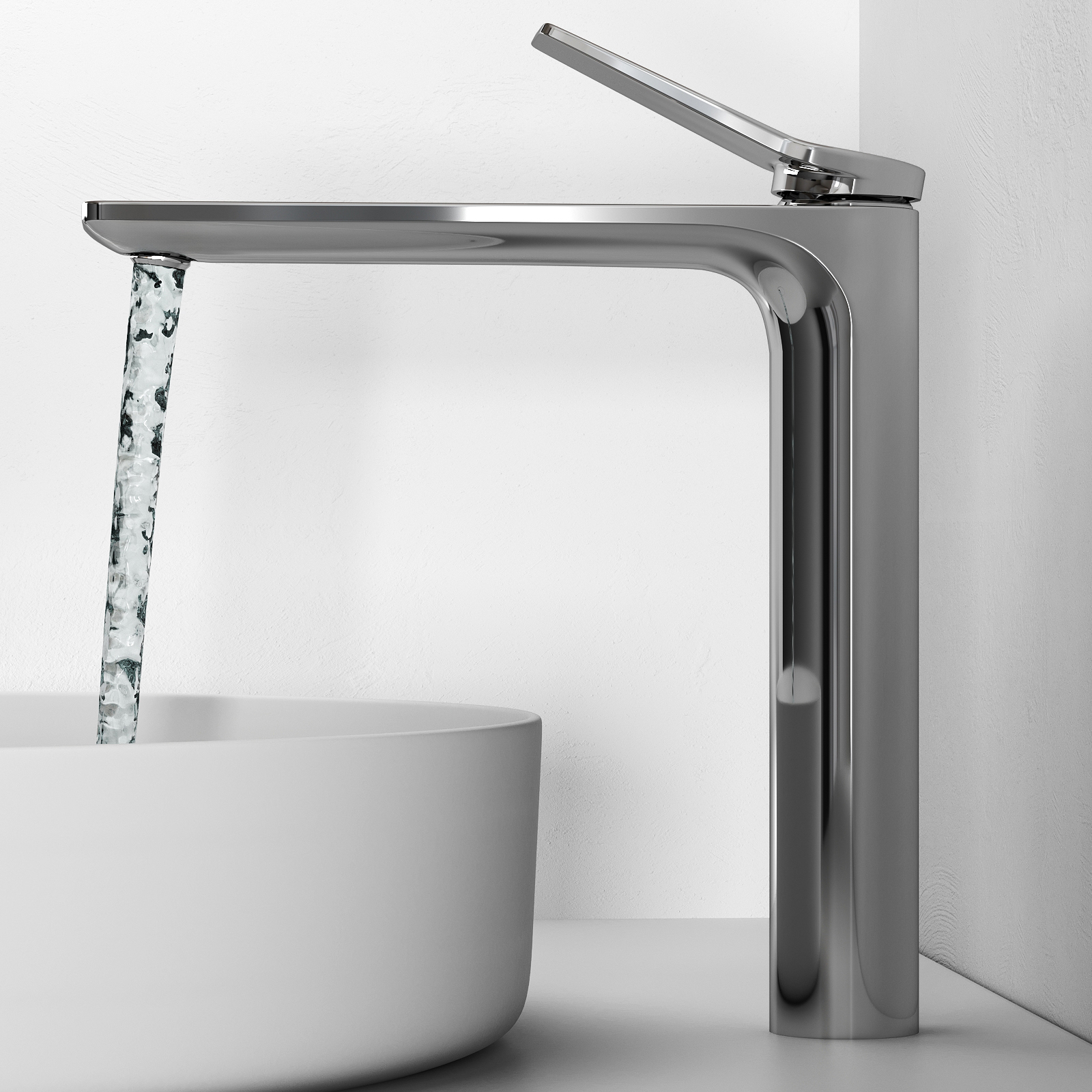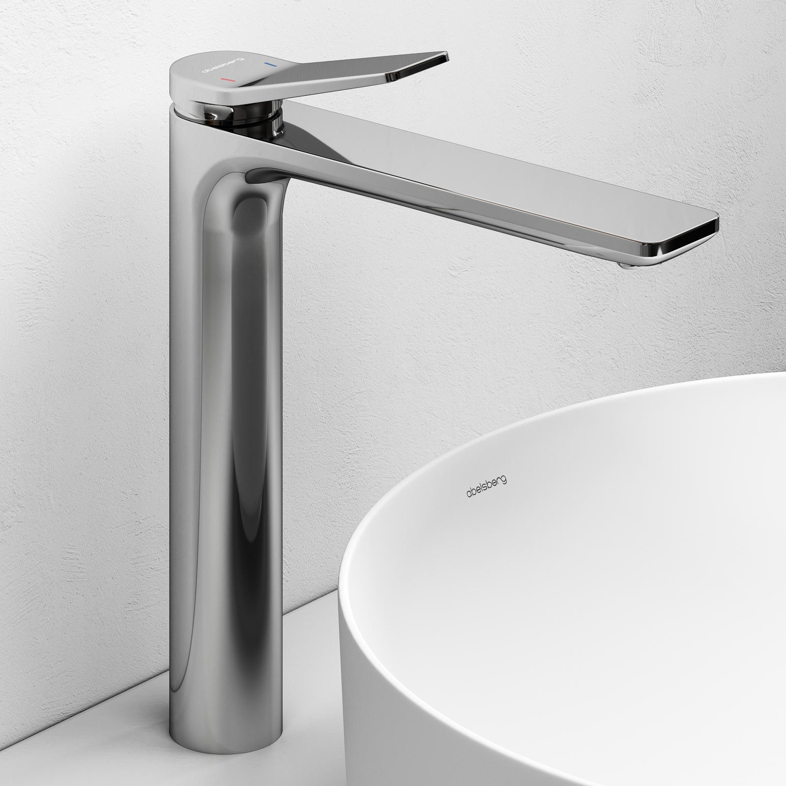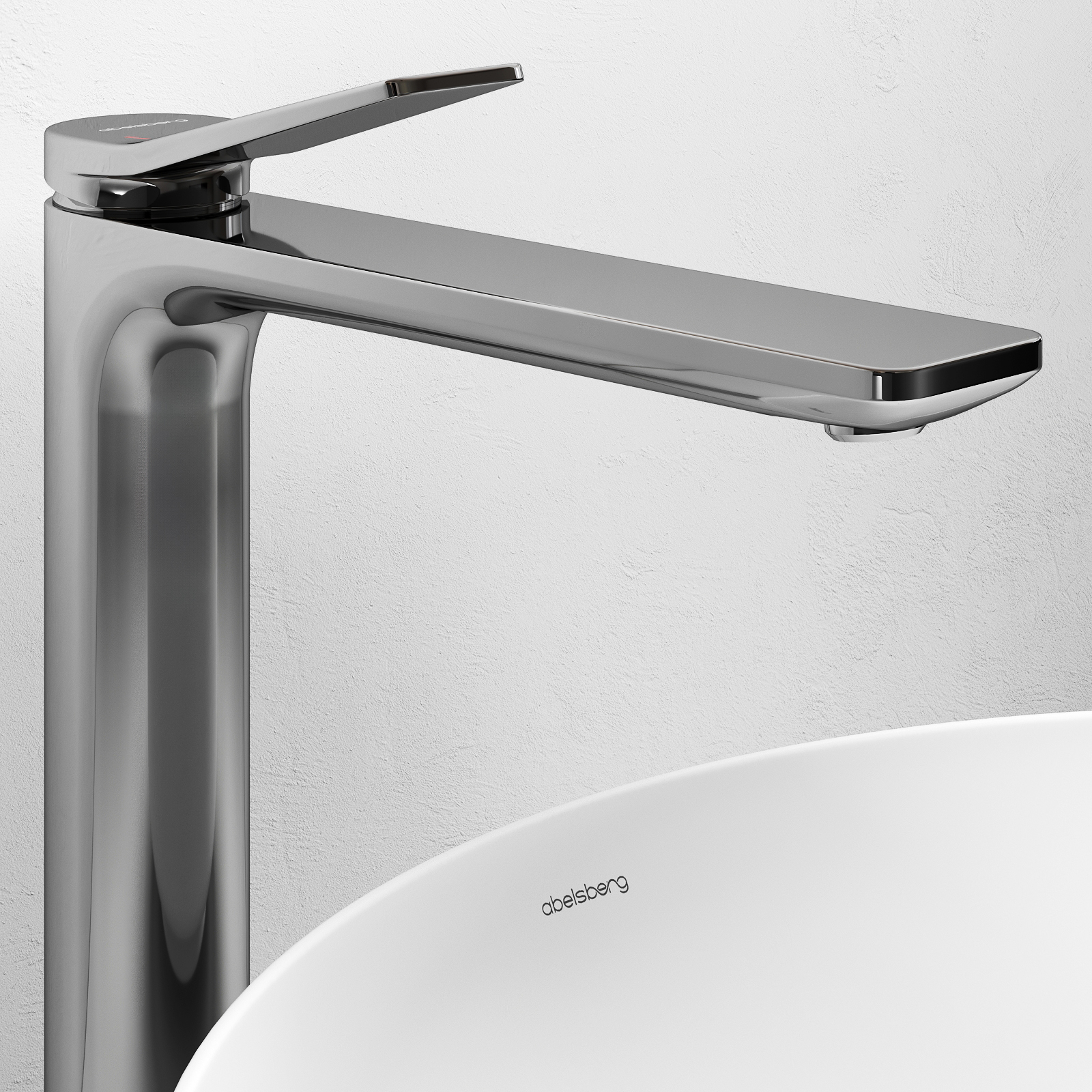 Смеситель Abelsberg Intensa в высокой версии — это мощная визуальная доминанта и функциональный акцент в ванной комнате. Вытянутый корпус с характерными изгибами и выразительной геометрией подчёркивает индивидуальность интерьера, особенно в сочетании с раковинами-чашами.