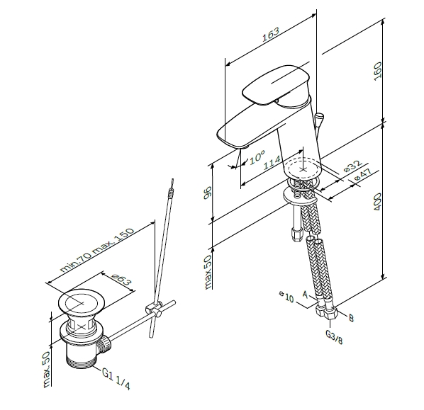 Комплект поставки: смеситель, аэратор, донный клапан с переливом.