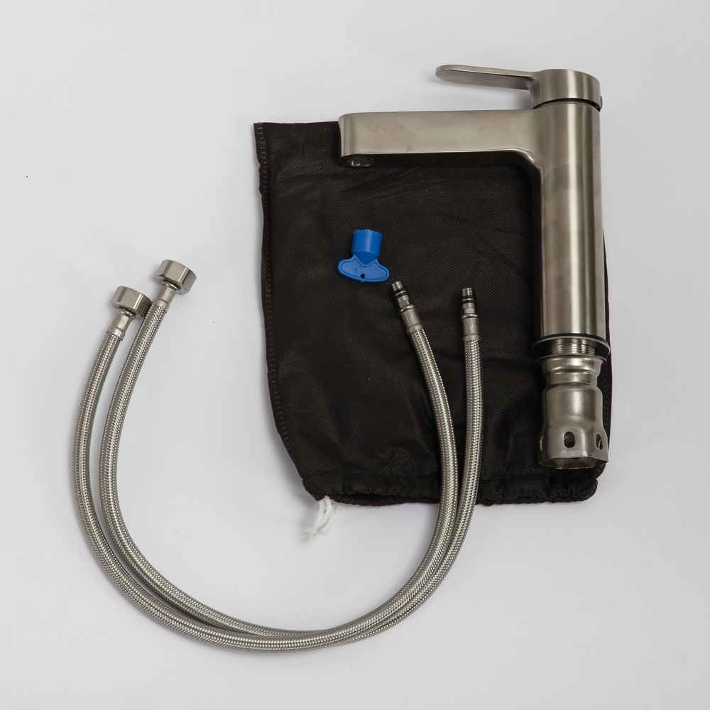 Комплект поставки: смеситель, аэратор, крепления, гибкая подводка.