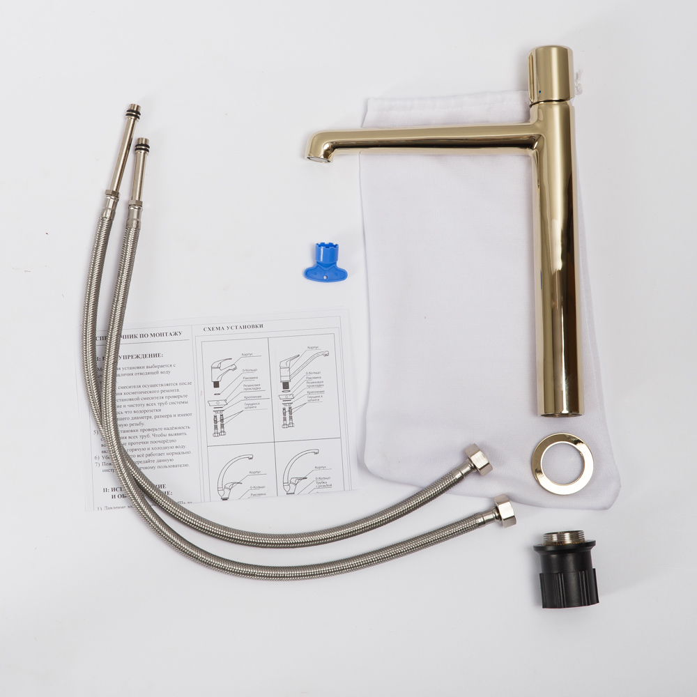 Комплект поставки: смеситель, аэратор, крепления, гибкая подводка.
