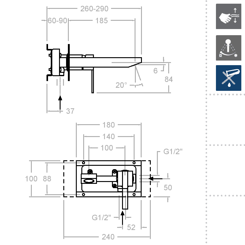 * Система экономии воды S2 путем открытия ручки смесителя в два этапа