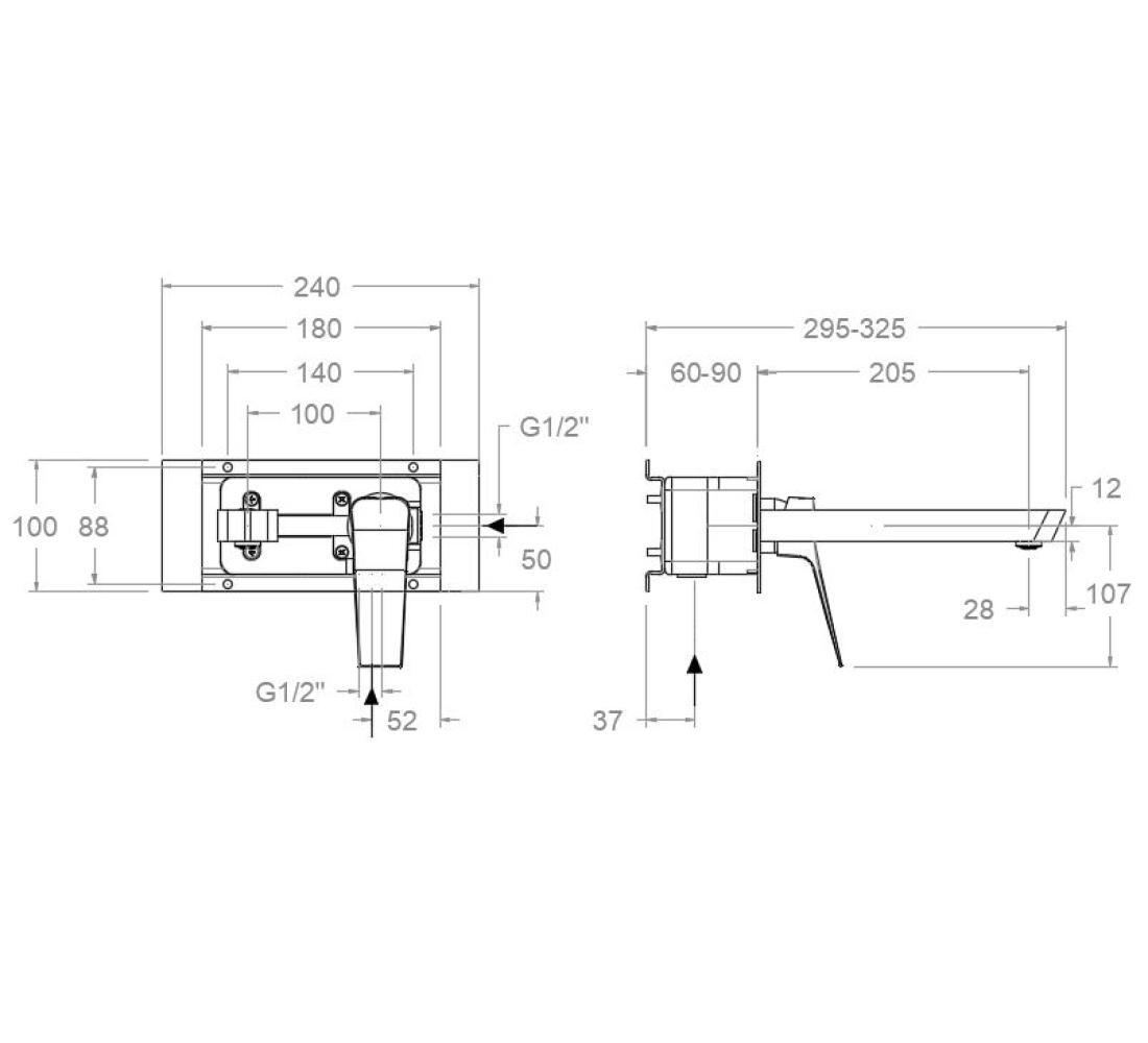 Встраиваемый смеситель для раковины с каскадным изливом PRISMA 422002GR графит.