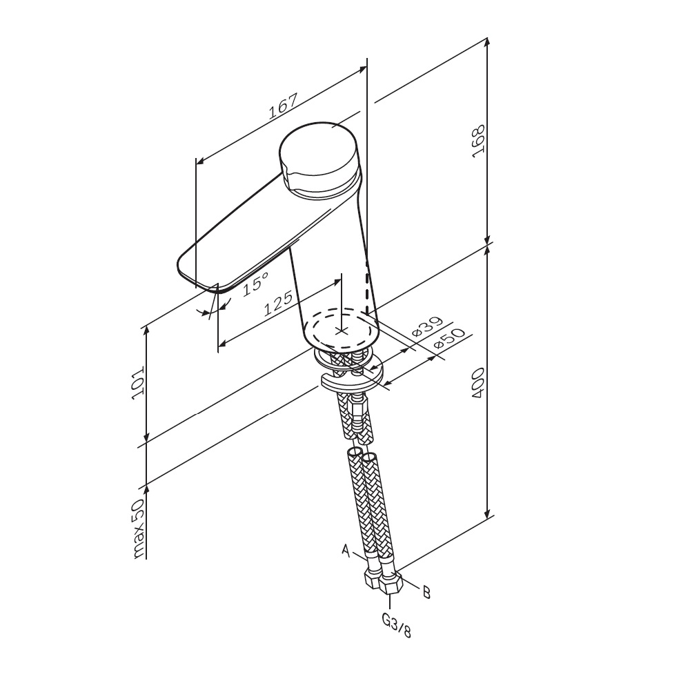 Идеальная геометрия разработанная по стандарту SA (Smart Angle) – математические выверенное соотношение высоты смесителя длины излива и наклона корпуса для удобного использования на умывальнике любого размера