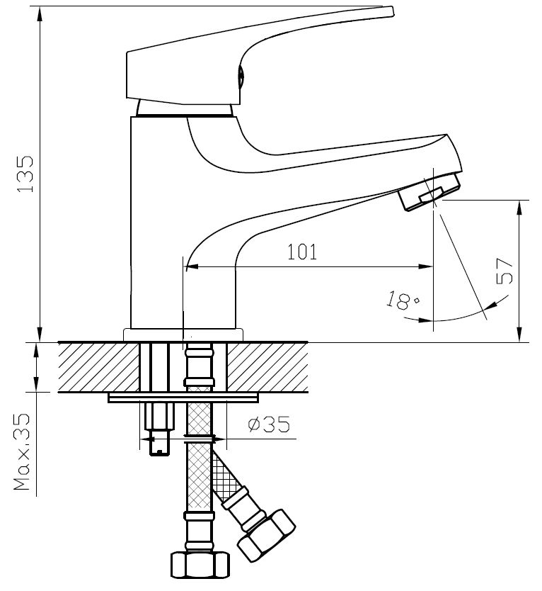 | Вращение излива | фиксированный |