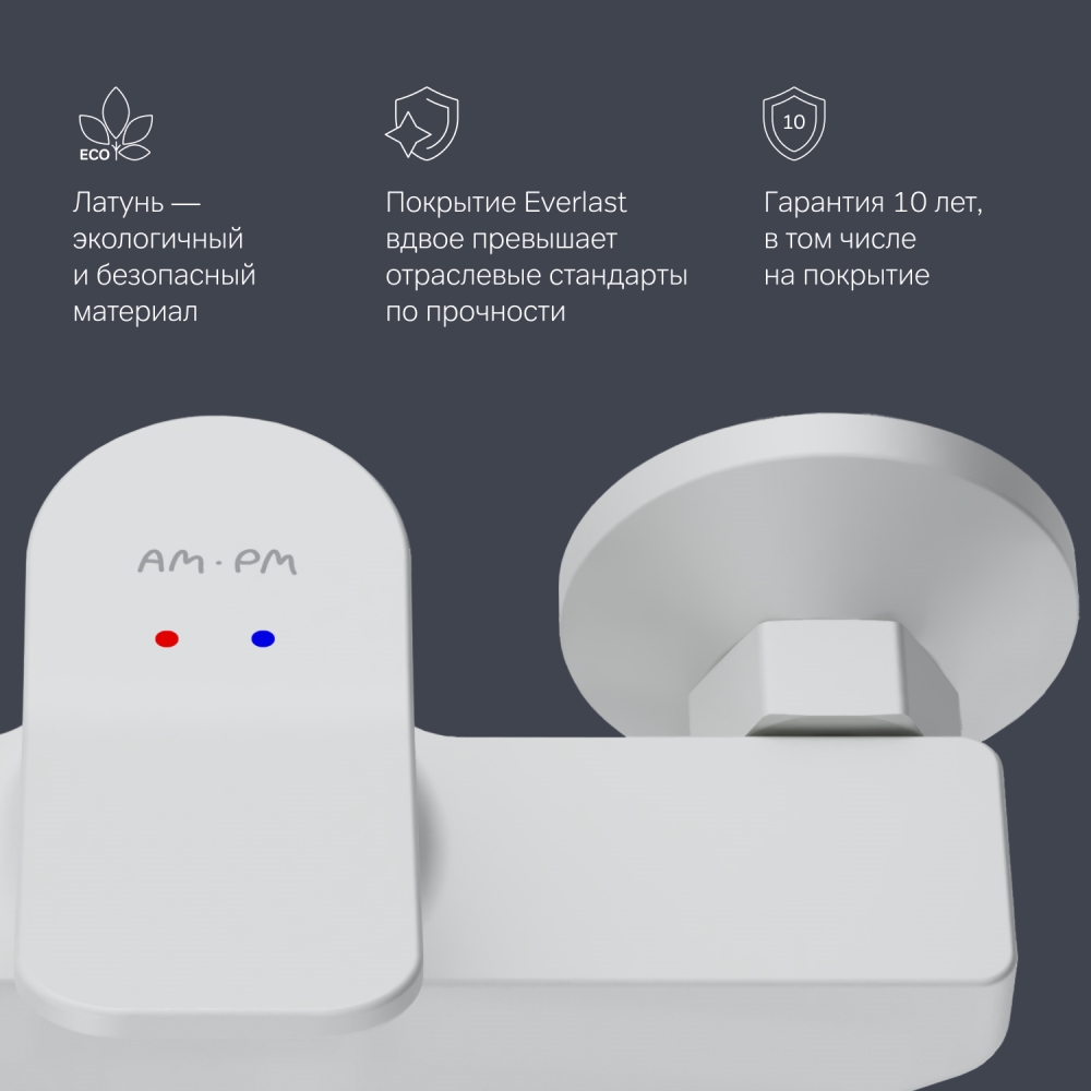 Европейская компания Am.Pm была основана в 2010 году и сразу зарекомендовала себя как динамично развивающийся бренд с уникальной философией и бизнес-моделью. Со смесителями, санитарной керамикой, ваннами, душевыми системами этой компании повседневные места станут экстраординарными. Изделия AM.PM популярны во всем мире благодаря высокому европейскому качеству, немецким технологиям и сочетанию минималистического скандинавского стиля с изящным итальянским.