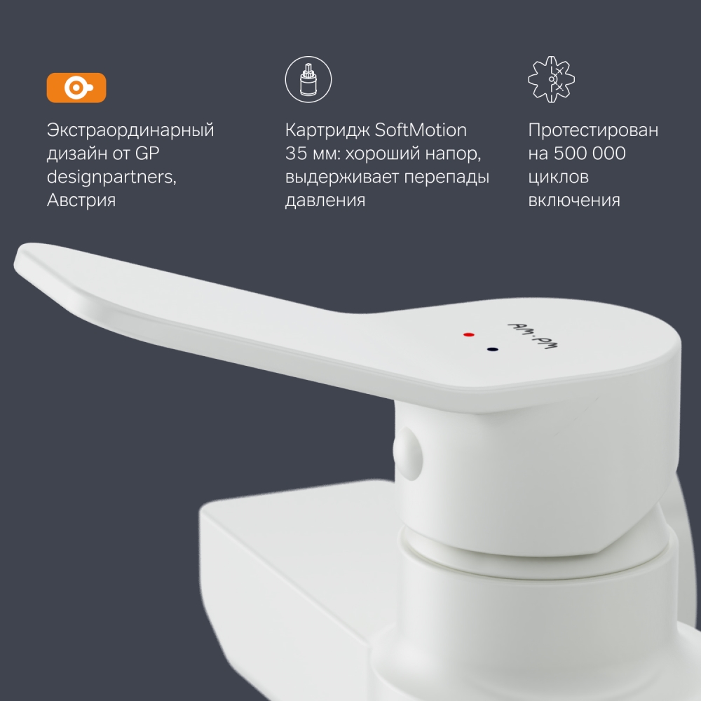 Смеситель X-Joy оборудован специально спроектированным для AM.PM керамическим картриджем SoftMotion 35 мм который обеспечивает оптимальную регулировку температуры а также позволяет выдерживать любые перепады давления.