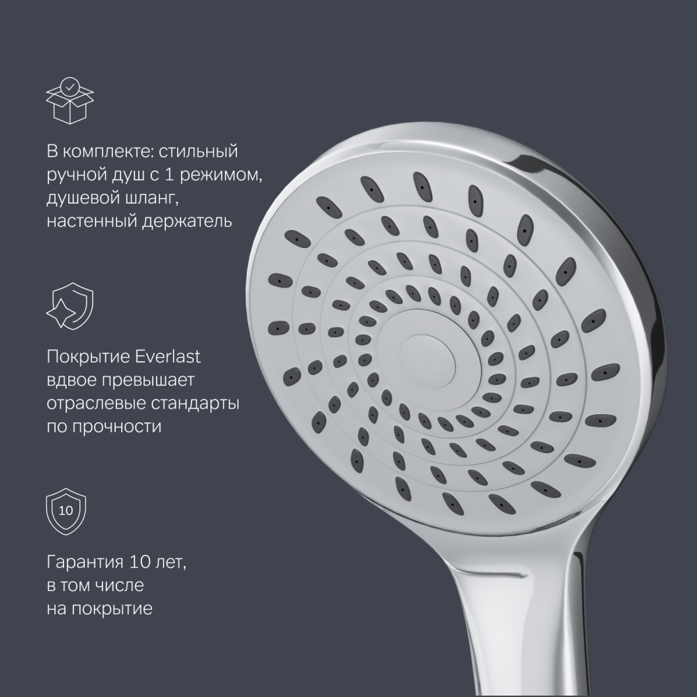 Универсальный длинный излив позволяет использовать смеситель как для ванны так и для рядом стоящей раковины. Функциональный держатель для ручного душа на два положения добавит удобства использования. Душевой шланг длиной 150 см позволит наслаждаться душем даже высокому человеку.