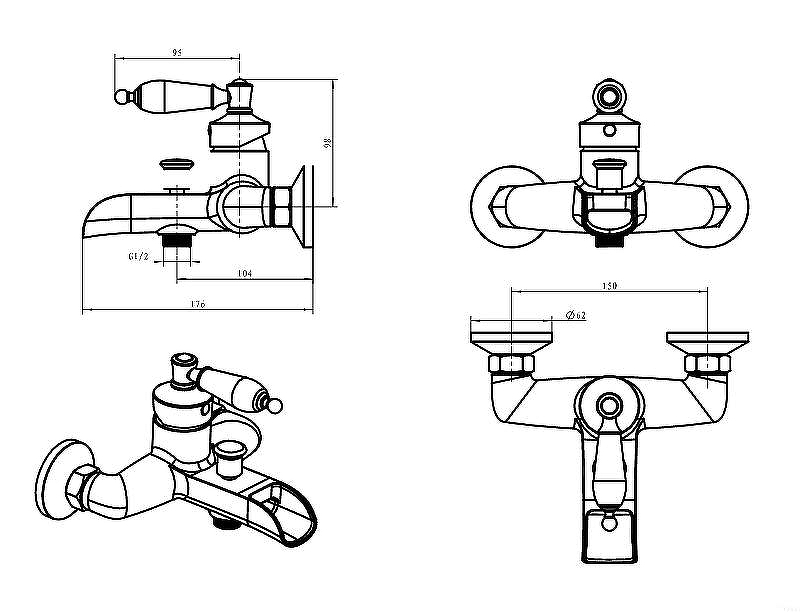 Комплект поставки: смеситель, душевая лейка, эксцентрики, комплект креплений.