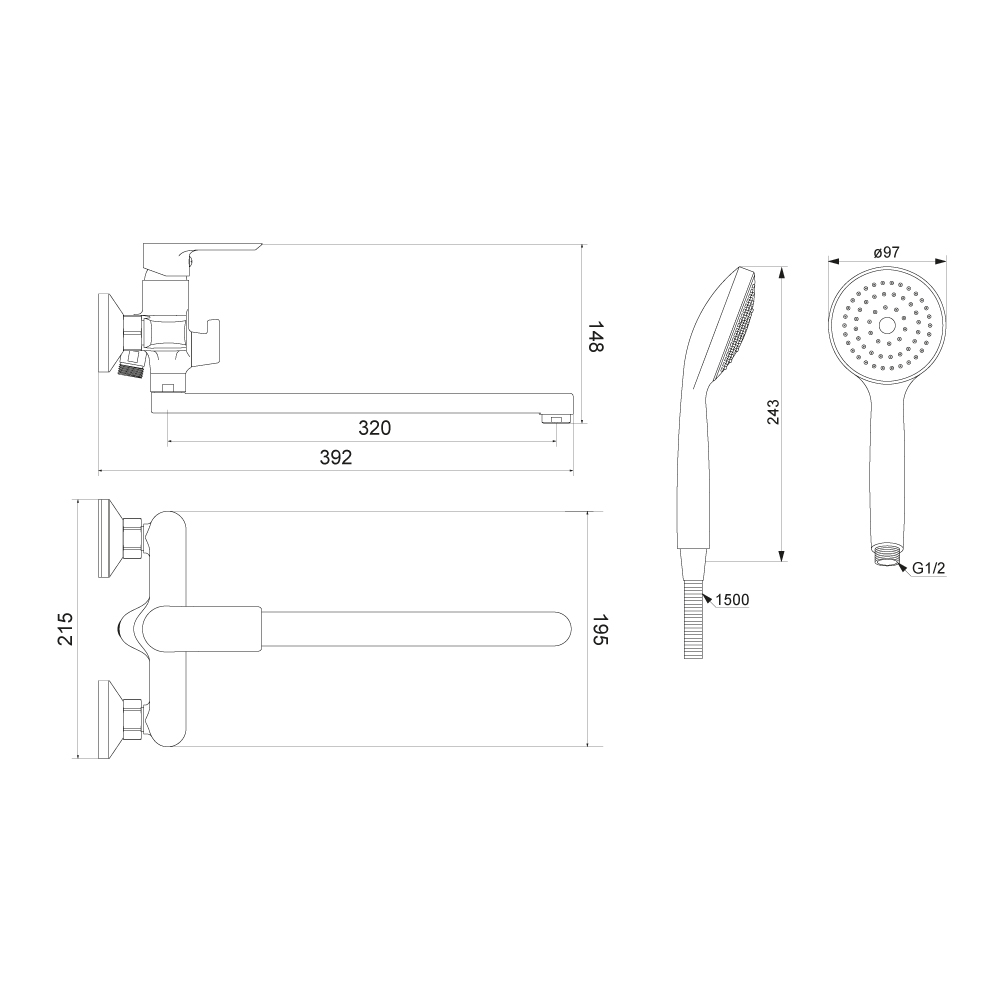 | Оснащение | смеситель / душевой гарнитур / эксцентрики / аэратор |