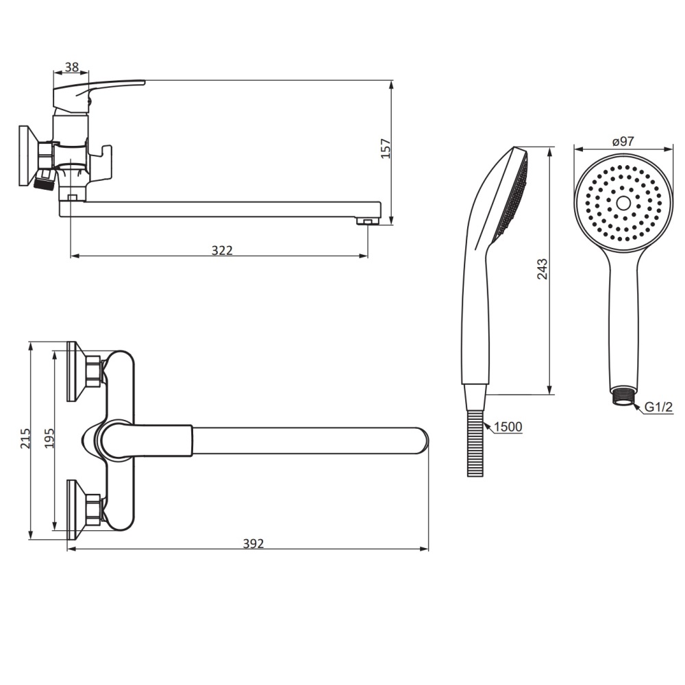 В комплекте душевой набор.