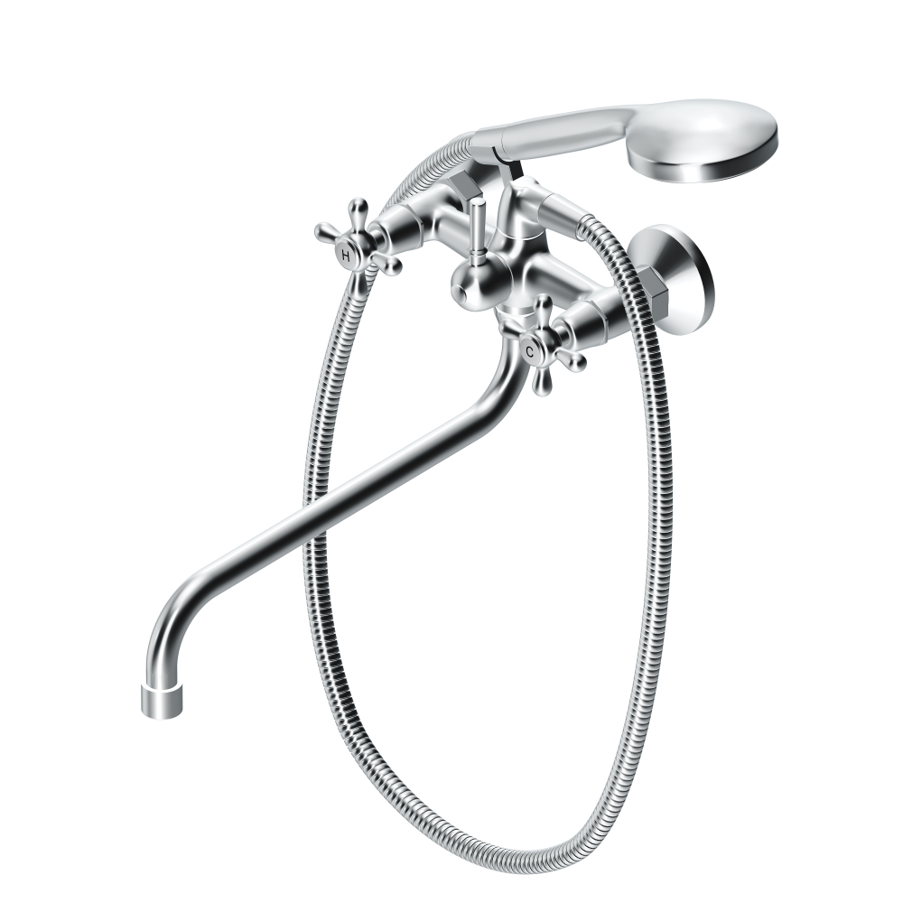 Хромированные двухзахватные смесители DORFF для ванны и душа из коллекции Vintage разработаны специально для тех кто ценит классические решения в дизайне интерьера.