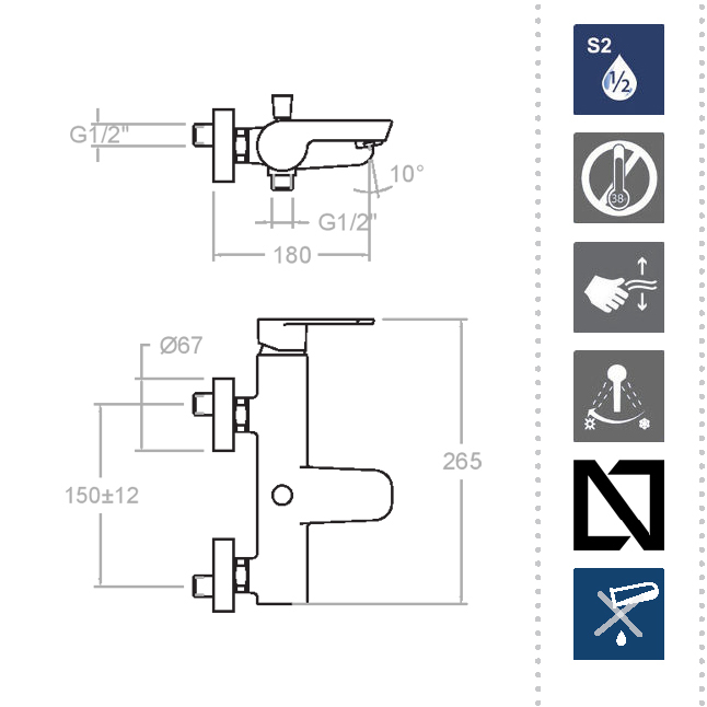 ДВОЙНОЕ ХРОМИРОВАНИЕ - смеситель приобретает свой цвет в процессе присоединения к смесителю частиц хрома под электрическим током, такой вид покрытия обеспечивает высокий срок службы покрытия и высокую износостойкость. S2/C2 - в смесителе применена система двухступенчатого открытия воды, позволяющая сохранять до 50% излишне потребляемой воды. TERMOSTOP BLOCK - внутри смесителя находится настраиваемый механизм, ограничивающий температуру горячей воды, что избавляет пользователя от возможных ожогов. У смесителя настроено заводское значение. ЭРГОНОМИЧНОСТЬ - дизайн смесителя создан так, чтобы каждый мог воспользоваться смесителем и самостоятельно ощутить весь спектр удобства. SENSIBILITY - смеситель снабжен керамическим картриджем, позволяющим сделать подбор комфортной температуры воды максимально удобным.