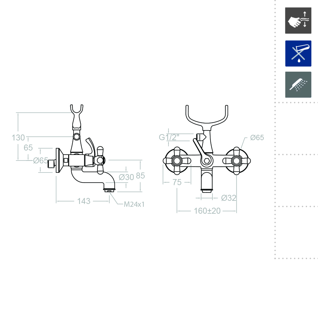 * Расход при 3 бар: 12 л/мин на выходе из душа и 20 л/мин для ванной