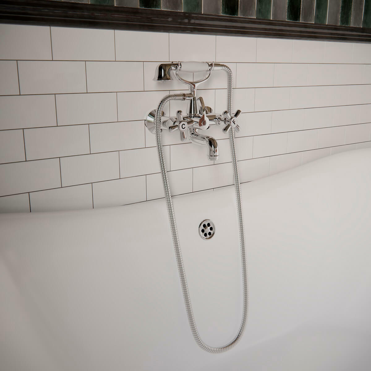 Смеситель для ванны наружнего монтажа вентельный с душевым коплектом GAUDI 3105CG .