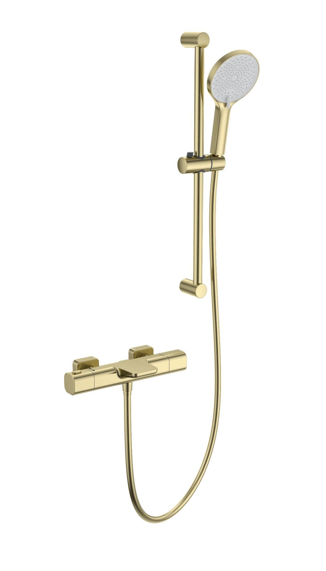 Смеситель для ванны с душем с термостатом и гарнитуром Wonzon & Woghand Plate WW-C2017-A-BG золото брашированный