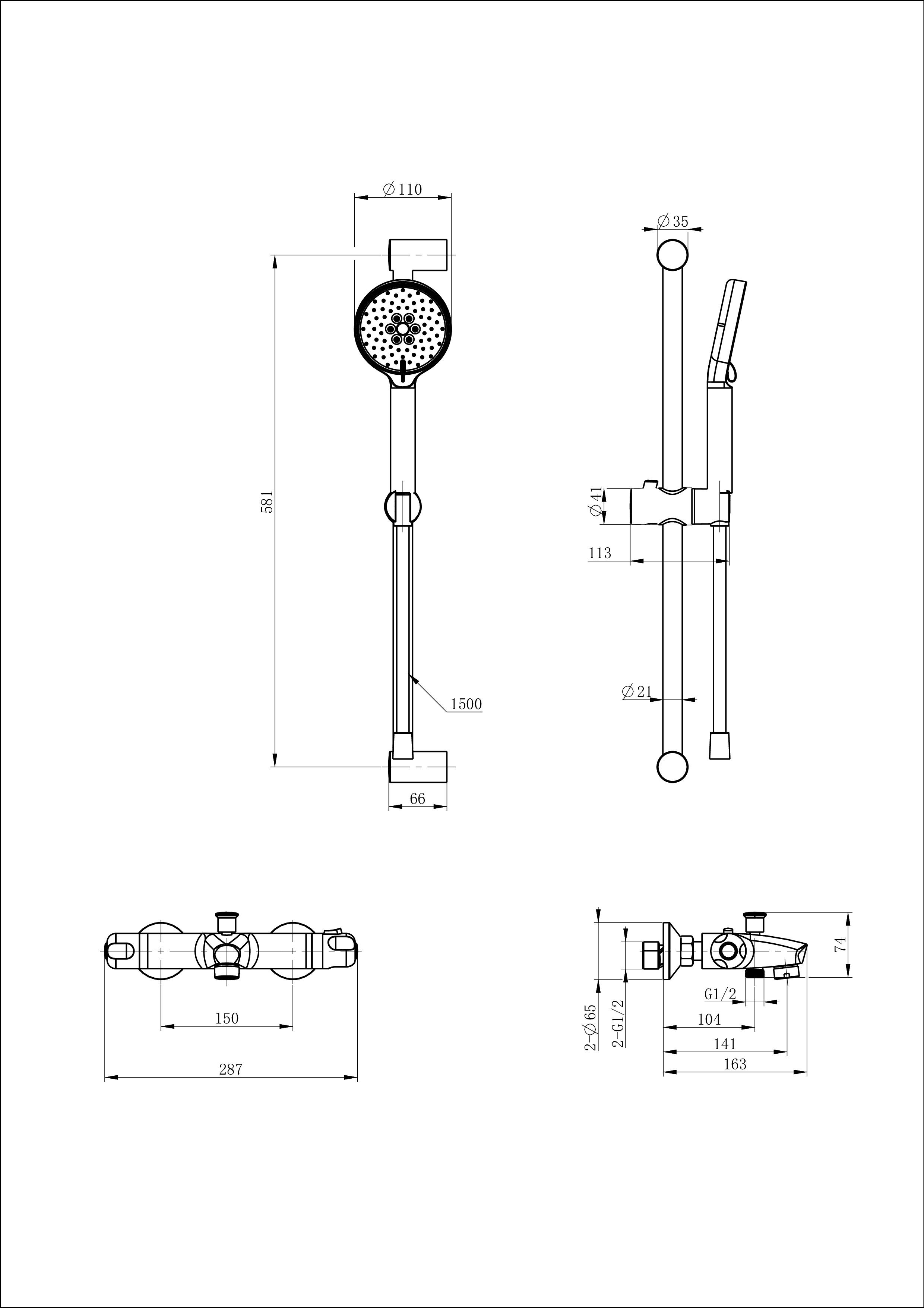 | Оснащение | смеситель / душевой шланг / держатель для душа / душевая штанга / душевая лейка / эксцентрики / монтажный комплект |