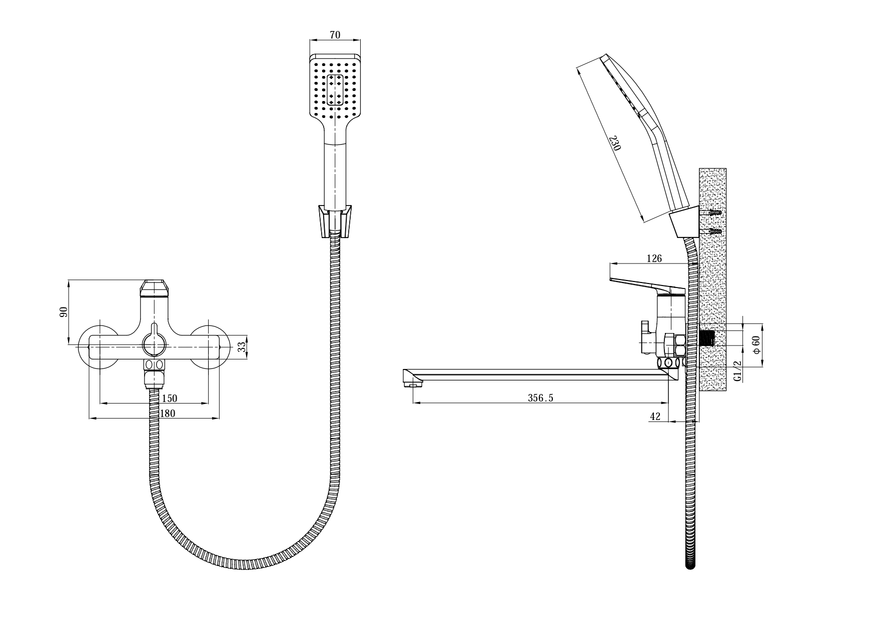 | Оснащение | смеситель / аэратор / эксцентрики / душевой шланг / душевая лейка |