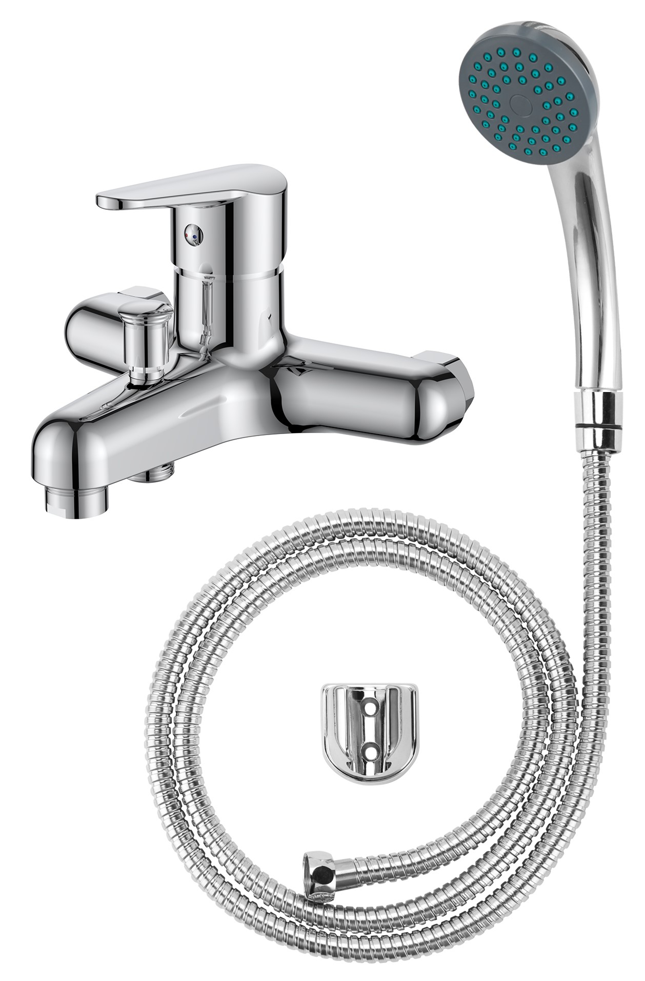 Комплект поставки: смеситель, аэратор, эксцентрики, душевой шланг, душевая лейка.