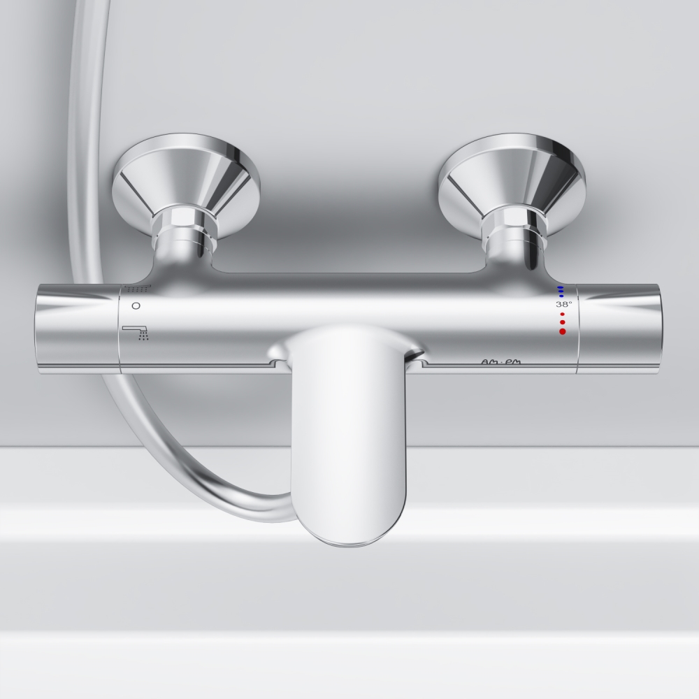 Передовые технологии: термостатический картридж с высокочувствительным термоэлементом и быстрой реакцией на изменения температуры или давления в водопроводной сети надежно защищает от ожога даже при внезапном отключении холодной воды.