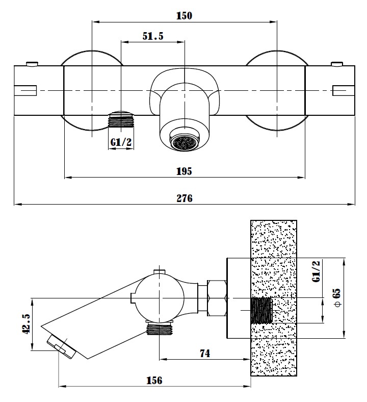 Смеситель для ванны с термостатом Esko Mikros T3054 Black матовый черный