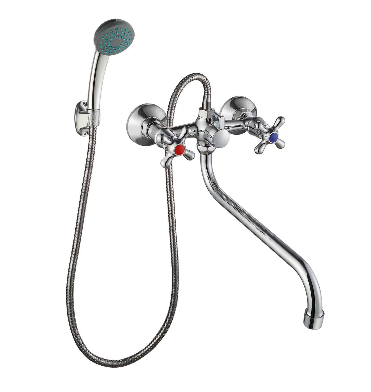 Комплектация : смеситель, чашки, эксцентрики, паспорт изделия, излив, акссесуары для душа (шланг, лейка, крепеж).