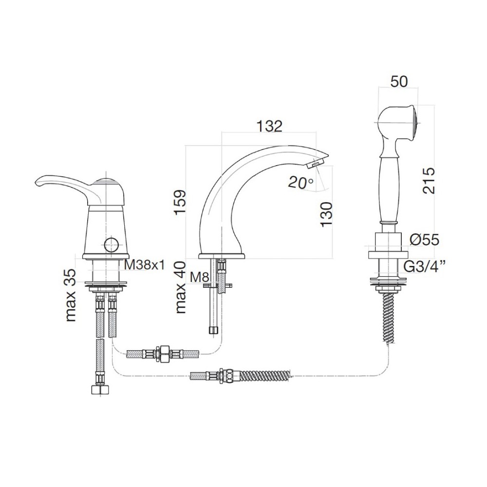 | Оснащение | смеситель, внутренняя часть, лейка, подводка, аэратор |