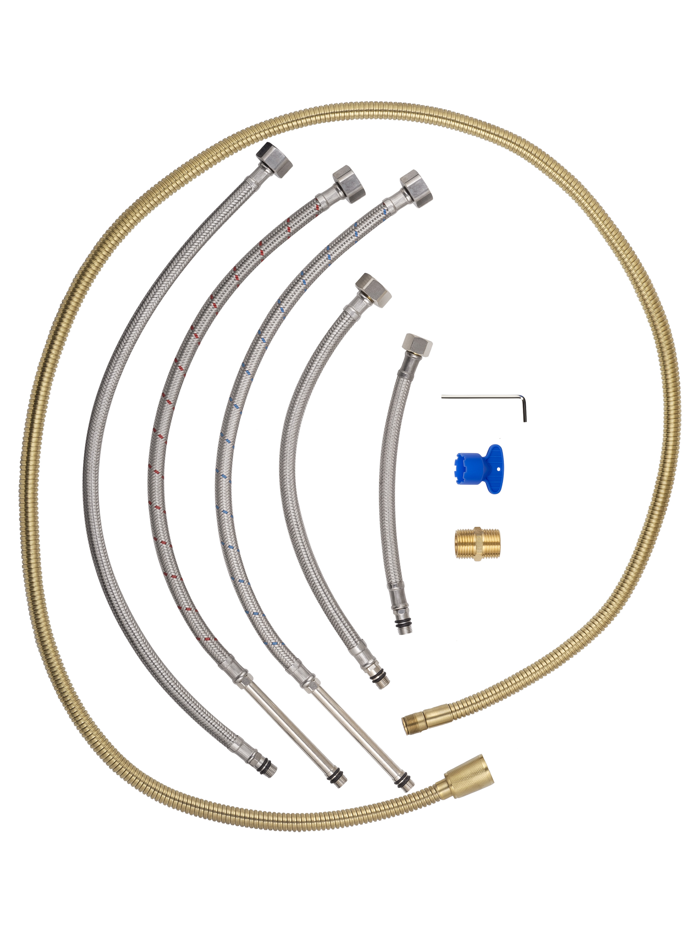 | Оснащение | смеситель / душевой шланг / держатель для душа / душевая лейка / монтажный комплект |