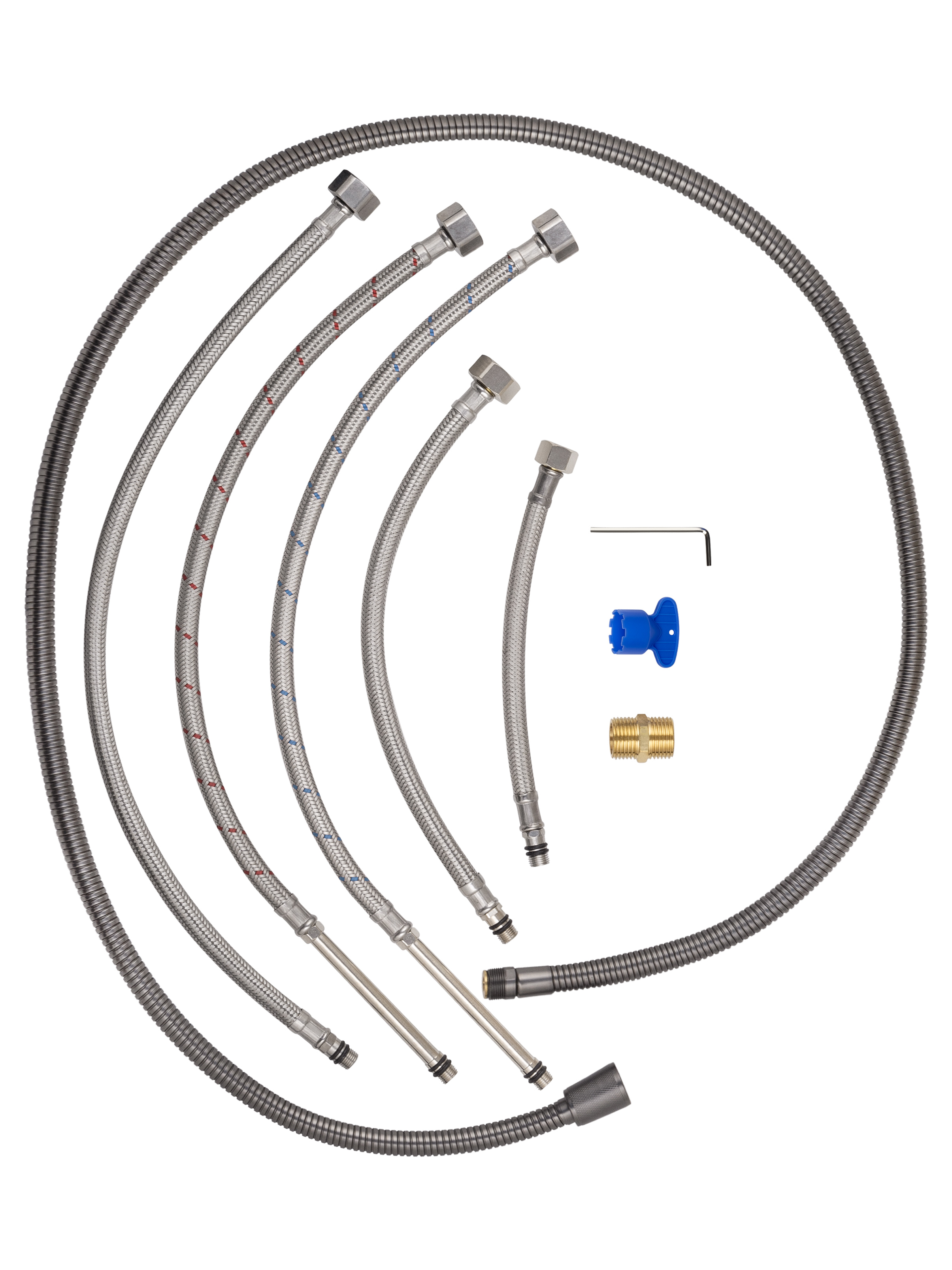 | Оснащение | смеситель / душевой шланг / держатель для душа / душевая лейка / монтажный комплект |