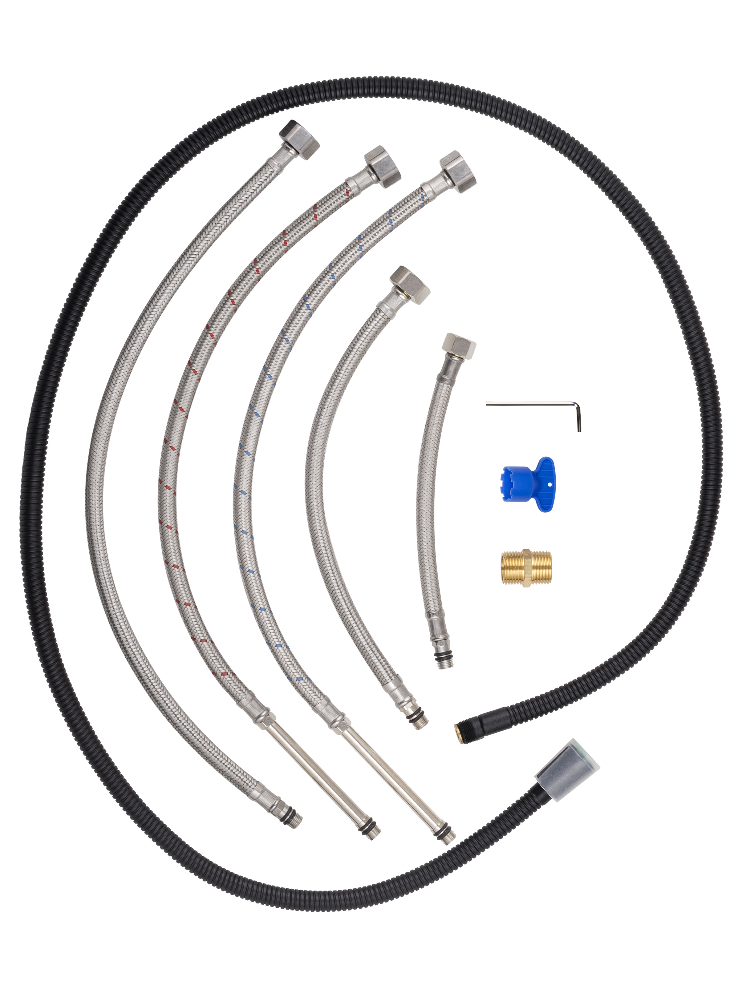 | Оснащение | смеситель / душевой шланг / держатель для душа / душевая лейка / монтажный комплект |