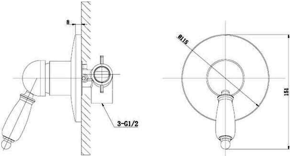 Смеситель с внутренней частью Caprigo Adria Uno 02-550-crm для душа хром глянцевый