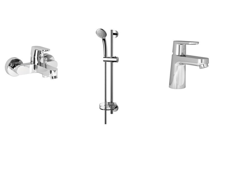 Ideal Standard VITO Промо-комплект, состоящий из: B0405AA VITO Смеситель для раковины, система монтажа EASY-FIX (облегченный монтаж), гибкая подводка G3/8" (шланги PEX), картридж 28 мм с функцией HWTC (ограничение максимальной температуры горячей воды), без функции CLICK, металлический донный клапан, металлическая рукоятка с индикаторами горячей / холодной воды, аэратор CASCADE M24 x1; B0412AA VITO Настенный смеситель для ванны/душа, стандартный настенный монтаж, металлические накладки, картридж 40 мм с функцией HWTC (ограничение максимальной температуры горячей воды), с функцией CLICK (ограничение потока воды), без душевого гарнитура, металлическая рукоятка с индикаторами горячей / холодной воды, автоматическое переключение, аэратор Perlator M24 x1; B9503AA IDEALRAIN SOFT S3 Душевой гарнитур, состоящий из 3-функциональной лейки ?80 мм, ограничение потока 8 л/мин, штанги 600 мм ?21 мм с пластиковым слайдером, металлического шланга 1750 мм, прозрачной пластиковой мыльницы. Каждое изделие упаковано индивидуально, все три изделия упакованы в одну промо-коробку.