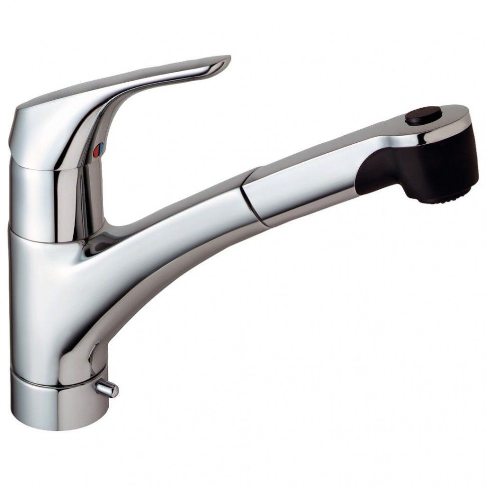 Ideal Standard CERASPRINT NEW Однорычажный смеситель для кухонной мойки под 1 отверстие, гибкая подводка G3/8”, картридж 47 мм IS с функцией HWTC (ограничение максимальной температуры горячей воды), с функцией CLICK (ограничение потока воды), с клапаном для подключения к посудомоечной машине, встроенный обратный клапан, металлическая рукоятка с индикаторами горячей / холодной воды, 2-функциональный вытяжной душ, шланг 1500 мм, монтаж IS-Fix - крепеж на центральной гайке M 33x1,5 с двумя блокирующими винтами (обеспечивает стабильную фиксацию смесителя)