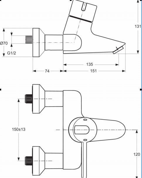 Ideal Standard CERAPLUS Настенный термостатический однорычажный смеситель для ванны/душа с цикловым затвором, монтаж на стандартных эксцентриках с возможностью облегченного демонтажа, с шумопонижателем, индикаторы горячей / холодной воды, антивандальный ламинарный регулятор потока (защита от попадания бактерий), цикловой затвор (безопасная подача горячей воды)