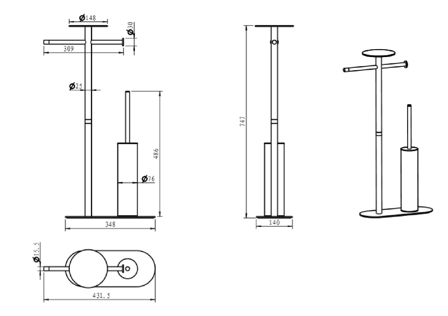 Комплект поставки: держатель туалетной бумаги, ершик, полотенцедержатель, полка.