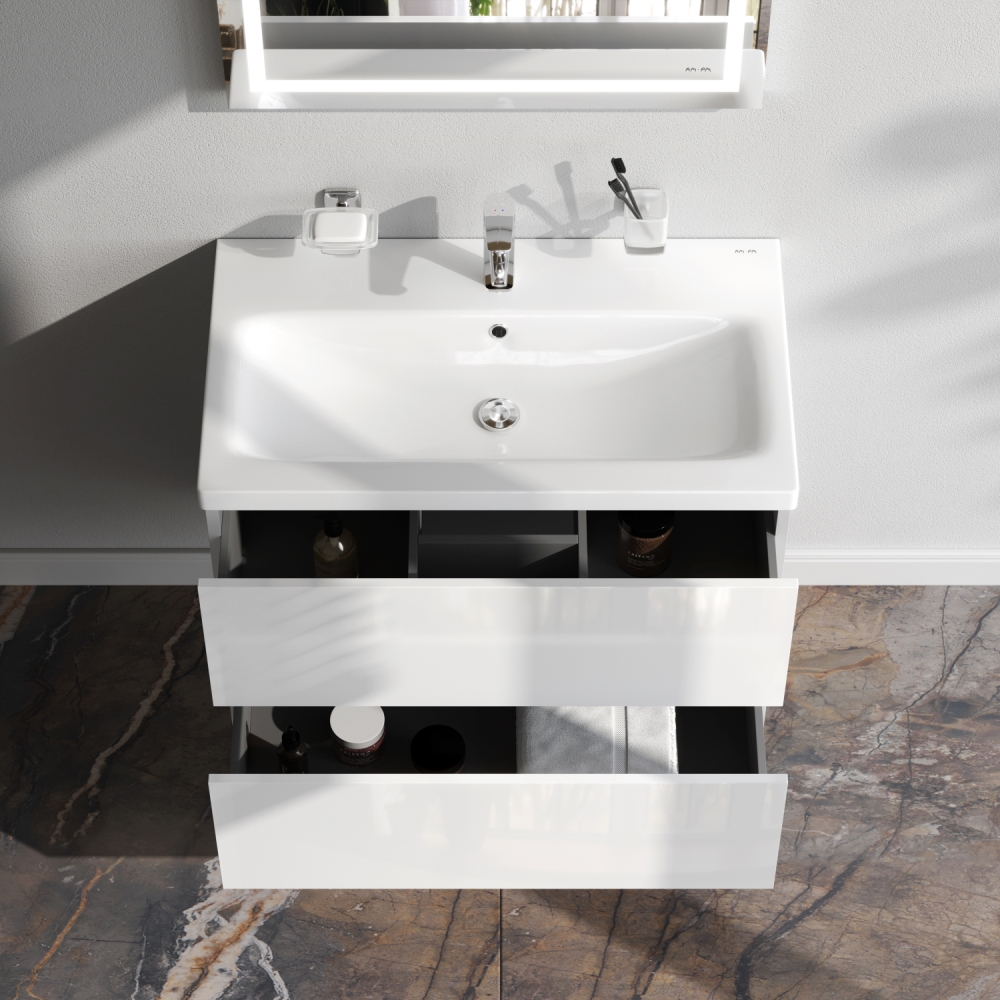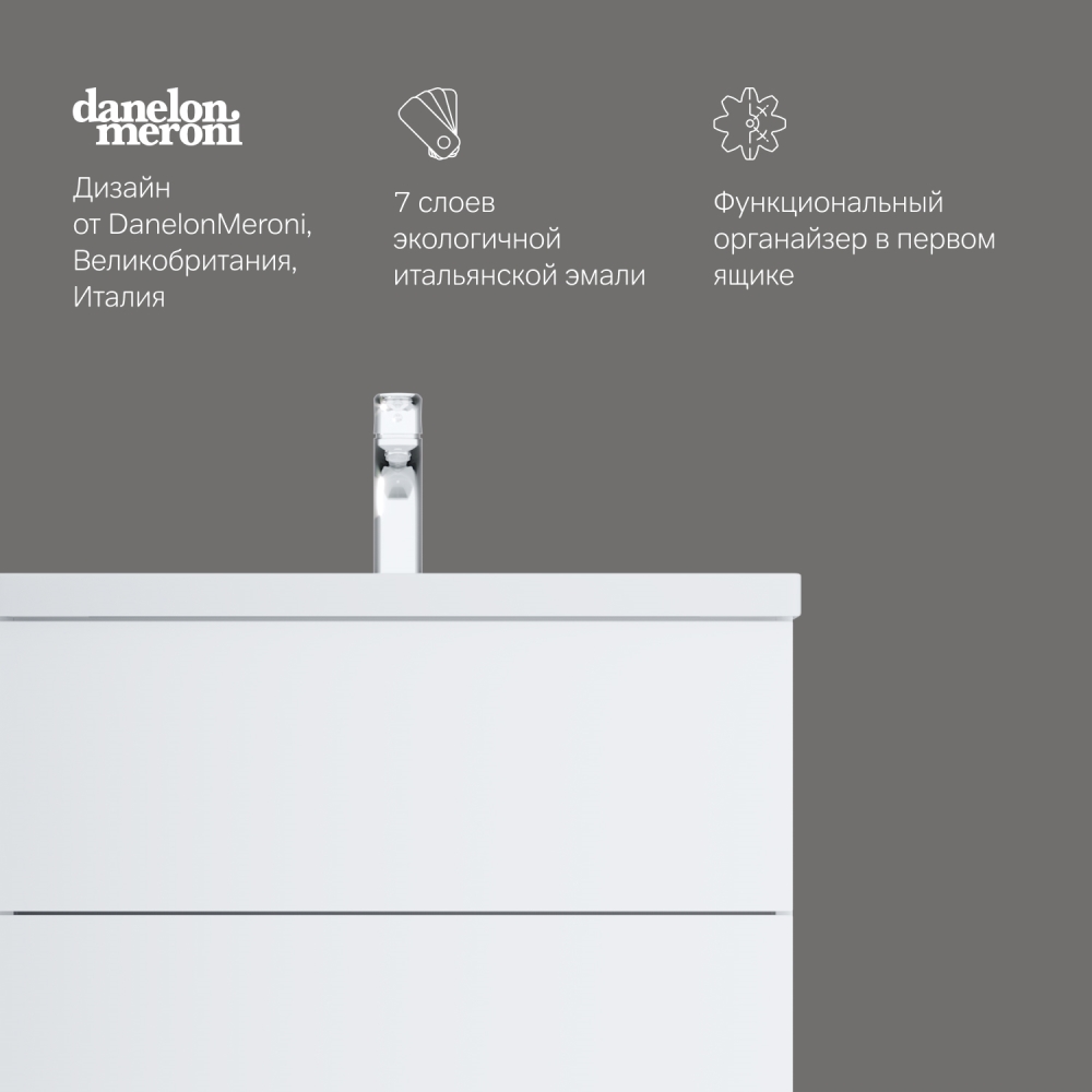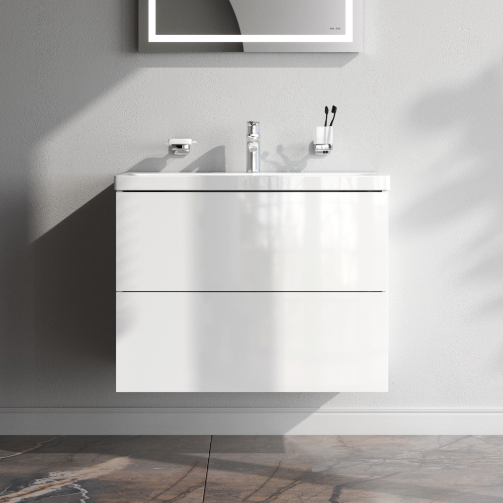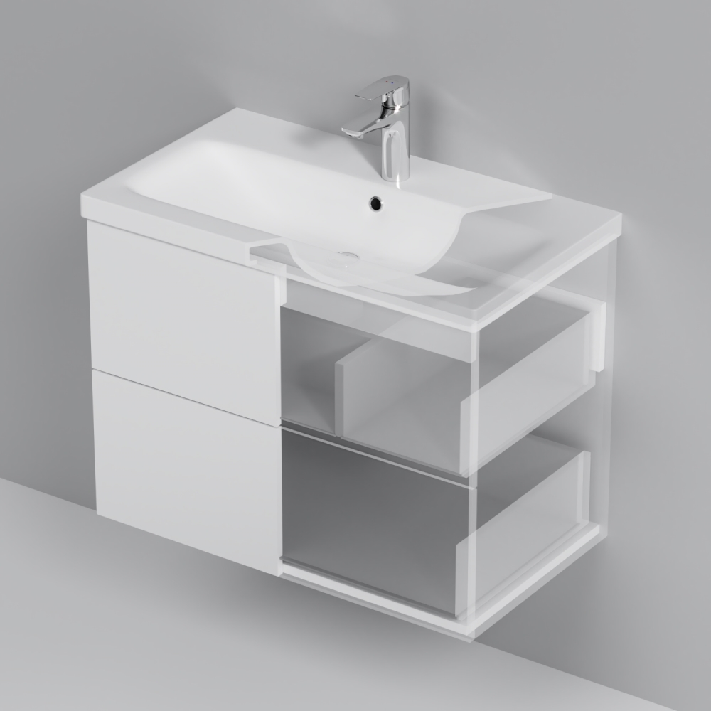 Хотите выделиться при ограниченном бюджете? Трендовый дизайн мебели для ванной комнаты Gem не уступает комплектам по гораздо более высокой цене.