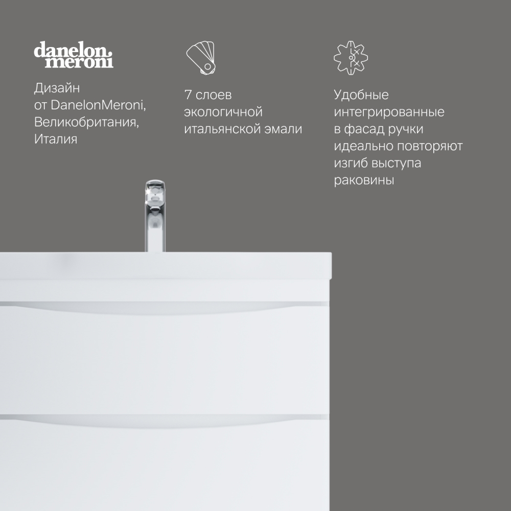 Утонченность в деталях: удобные интегрированные в фасад ручки идеально повторяют изгиб выступа раковины
