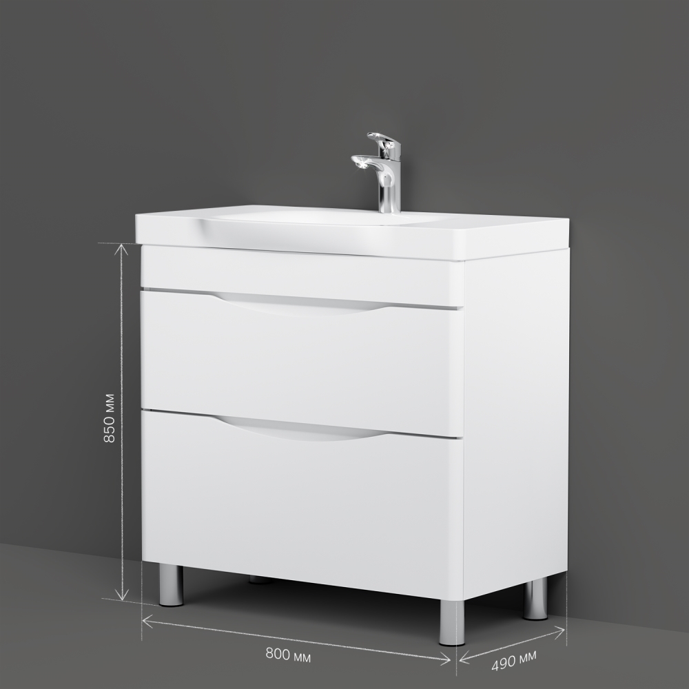 Тумба под раковину Am.Pm Like 80 см напольная белая глянцевая