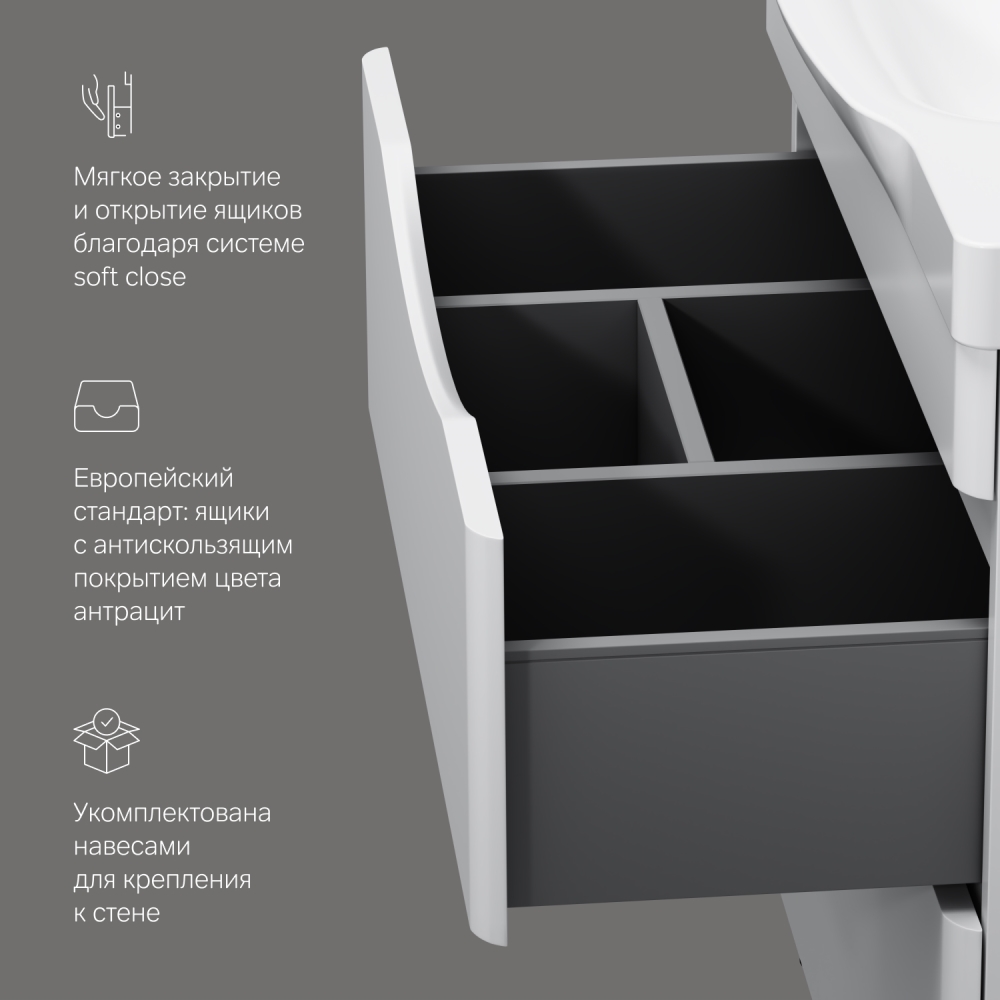 Комплект поставки: тумба, крепления, ножки.