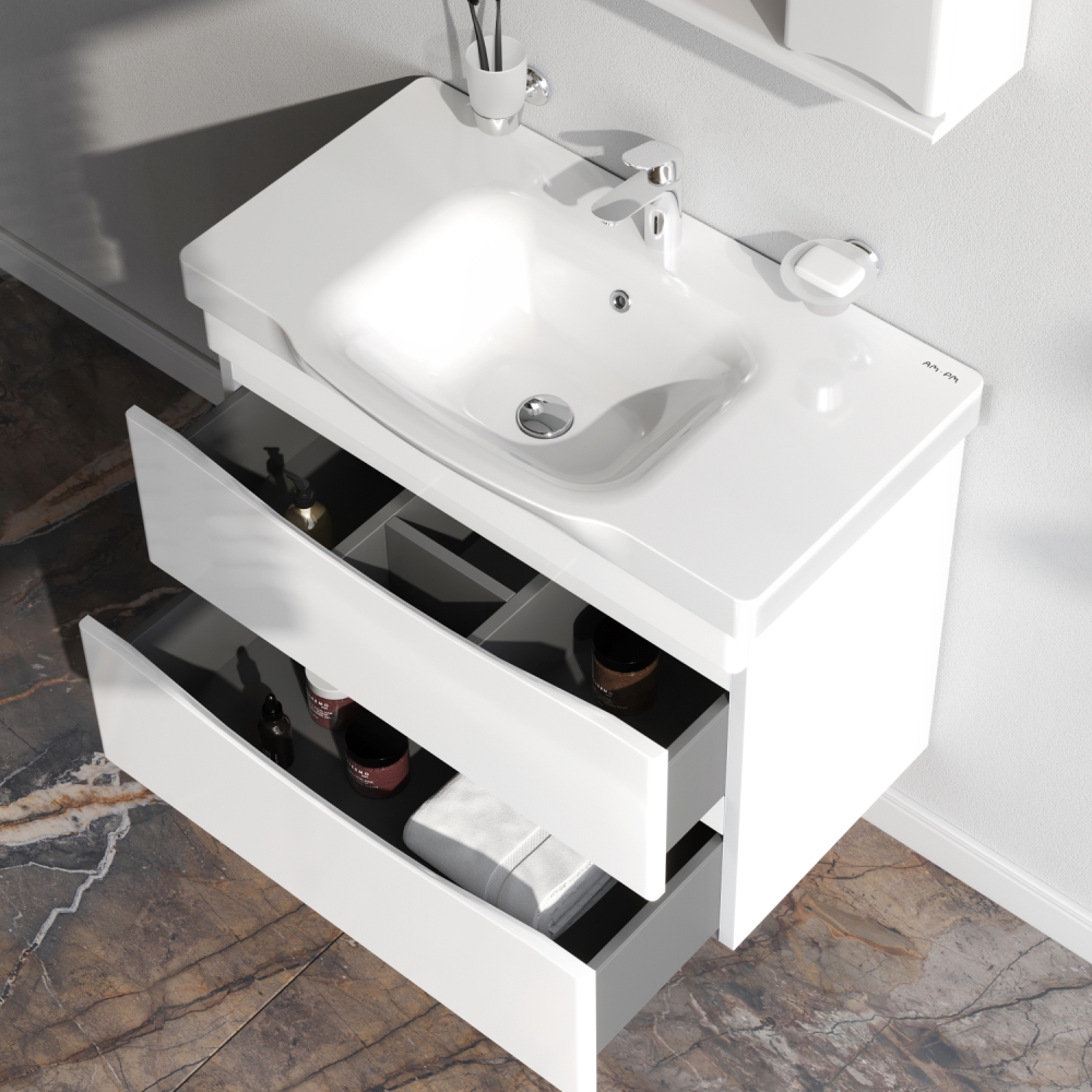 Тумба под раковину Am.Pm Like 80 см подвесная белая глянцевая