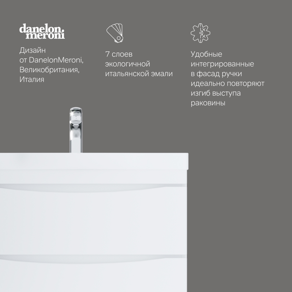 Утонченность в деталях: удобные интегрированные в фасад ручки идеально повторяют изгиб выступа раковины
