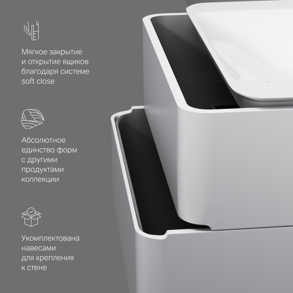 Эксклюзивное дизайнерское решение: боковые стенки и фасад представляют собой единое целое предоставляя ящикам возможность полного выдвижения.