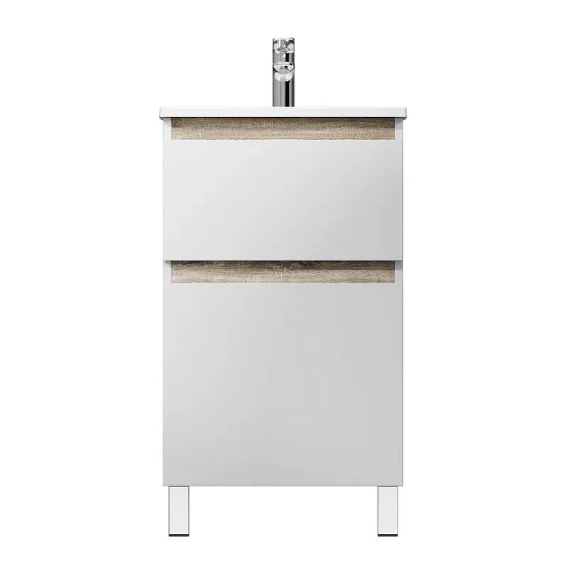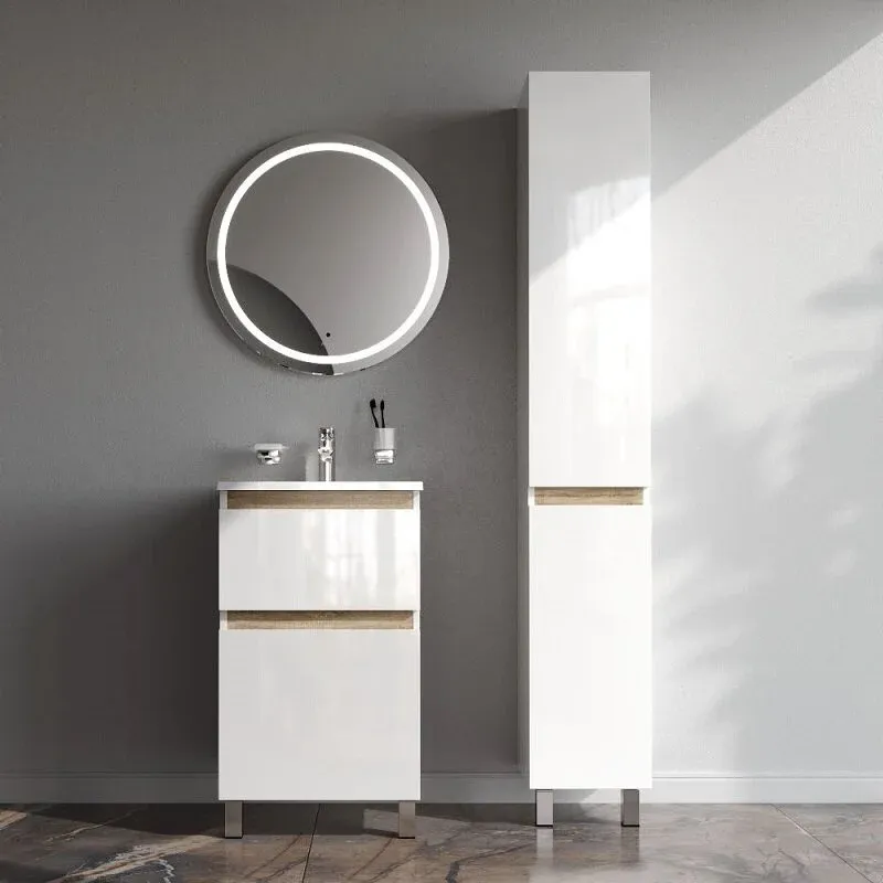 Напольная тумба бренда AM.PM коллекции X-Joy отличается эстетичным сочетанием цветов и фактур от дизайн-агентства Danelon Meroni: белые глянцевые фасады дополнены отделкой под светлое дерево. Функциональный органайзер в первом ящике позволит хранить необходимые косметические средства под рукой и в полном порядке. Внутреннее покрытие каждого ящика выполнено в современном цвете антрацит" и имеет противоскользящее покрытие. Материал изделия - МДФ ЛДСП. Размер тумбы (Ш/Г/В): 475x445x830. Цвет тумбы - белый глянец.