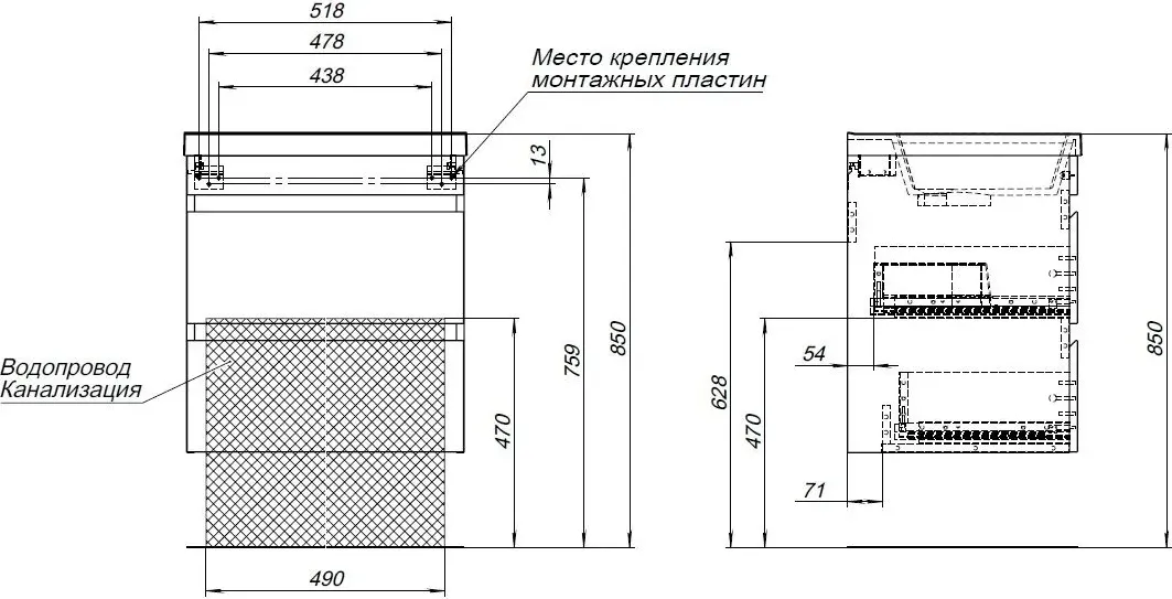 | Вид основания под раковину | тумба под раковину |