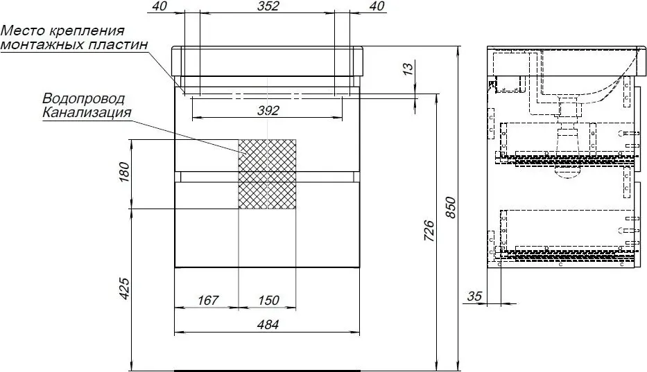 | Вид основания под раковину | тумба под раковину |