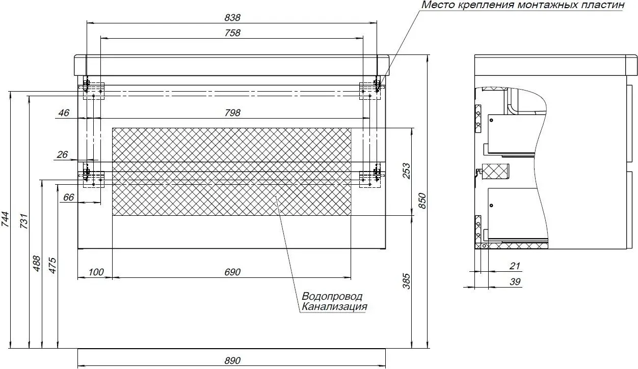 Вид основания под раковину