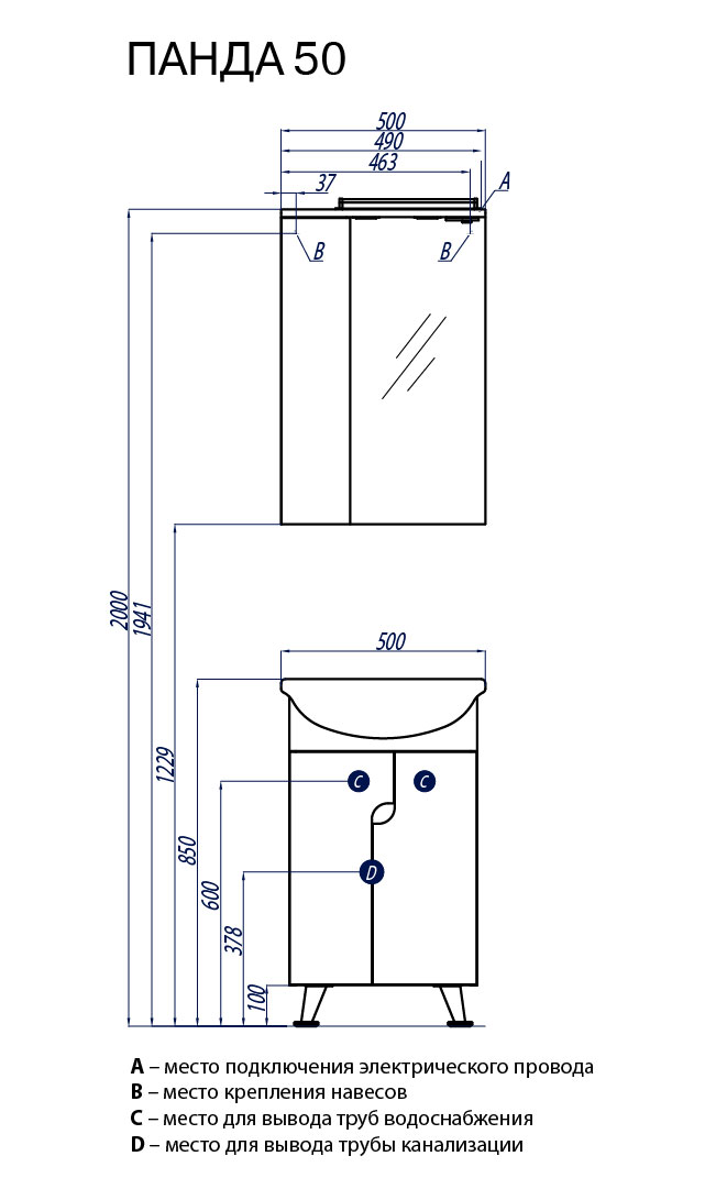 Тумба под раковину Aquaton Панда 50 см напольная белая