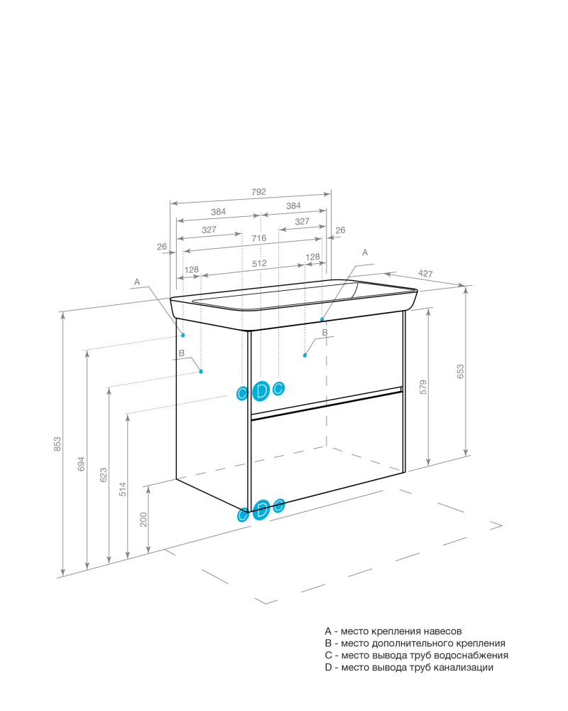 Комплект поставки: тумба под раковину, крепления.