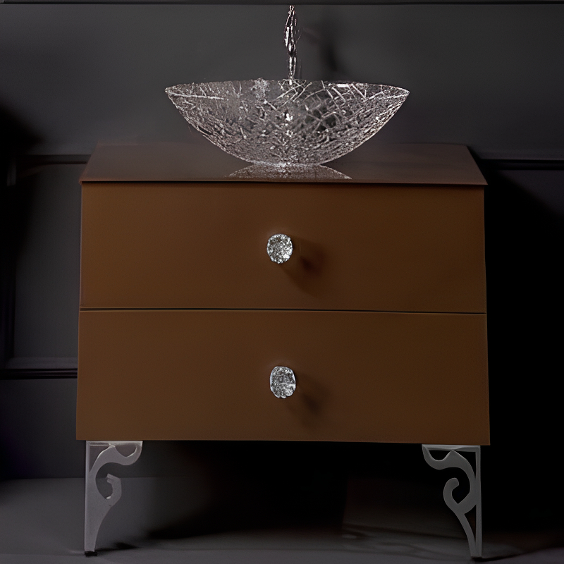 Armadi Art представляет коллекцию Neoart. Цветовая гамма коллекции представлена глянцевым белым, глянцевым капучино, глянцевым коричневым и цветом Black wood, под заказ возможно исполнение в глянцевом черном цвете. Размерный ряд коллекции NeoArt состоит из 80 см, 100 см, 110 см и 140 см (на 2 чаши-раковины) В коллекции NeoArt используется ультраглянцевый акриловый МДФ от австрийского производителя Senosan, не только имеющий глубокий и насыщенный цвет, но и позволяющий изделиям служить долгое время несмотря на влажную среду.). Дно ящиков отделано эко-кожей с фирменным стежком Antonio Valanti. Столешницы выполнены как из керамики и каленого стекла, так и материала Solid Glass®, в состав которого входит мраморная крошка и стекло, материал чрезвычайно прочен, не оставляет следов царапин и обладает неповторимой глубиной цвета. Эксклюзивная линейка раковин данной коллекции вряд ли оставит равнодушными даже самых притязательных клиентов. Некоторые из них производятся по оригинальным лекалам из материала Corian®, другие из чистейшего горного хрусталя, с оптимальным содержанием окиси свинца (PbO), не менее 24%. Произведенные в Италии ручки, покрыты позолотой 24Карат. Дно выдвижных ящиков покрыто кожей с маркировкой Antonio Valanti. В изделиях используется фурнитура от мирового лидера Hettich®. Главной концепцией коллекции Neoart является идея создать мебель-конструктор. Огромный выбор эксклюзивных ручек, ножек, столешниц и цветов фасадов представляет Заказчику возможность создать неповторимую мебель для своей ванной комнаты.