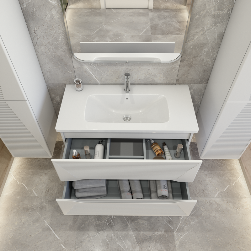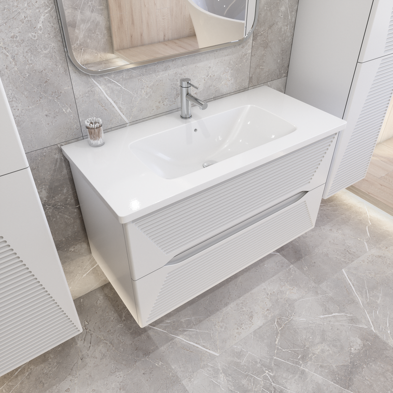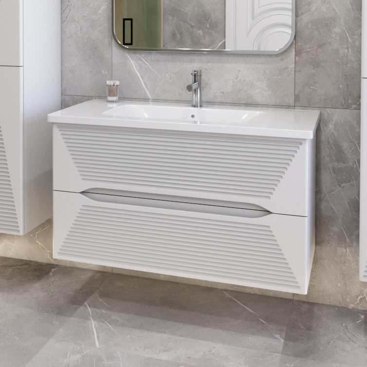 Тумба под раковину Caprigo Модо Терца 100 см 35615-SF027 подвесная белая матовая