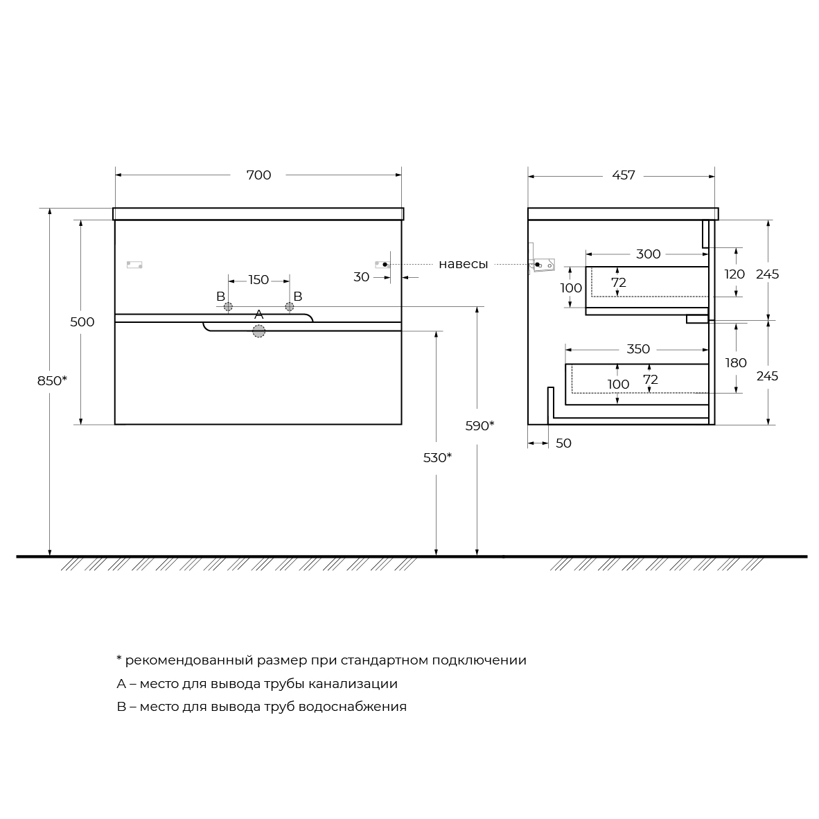 Комплект поставки: тумба под раковину, навесы.